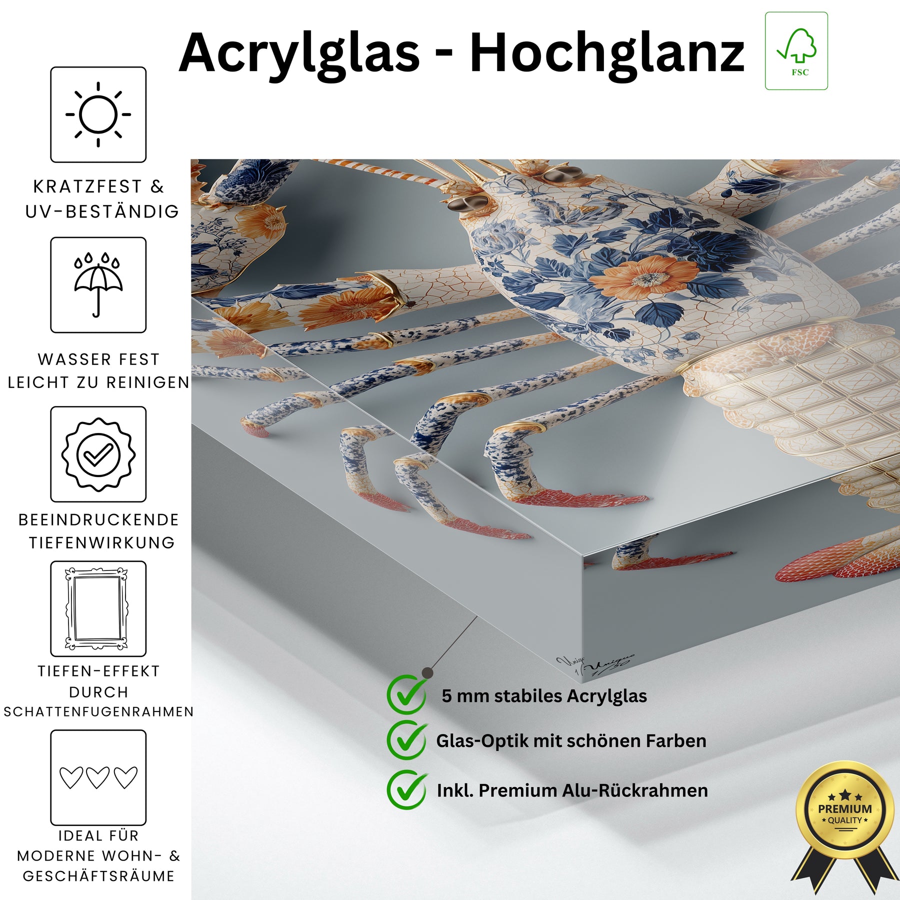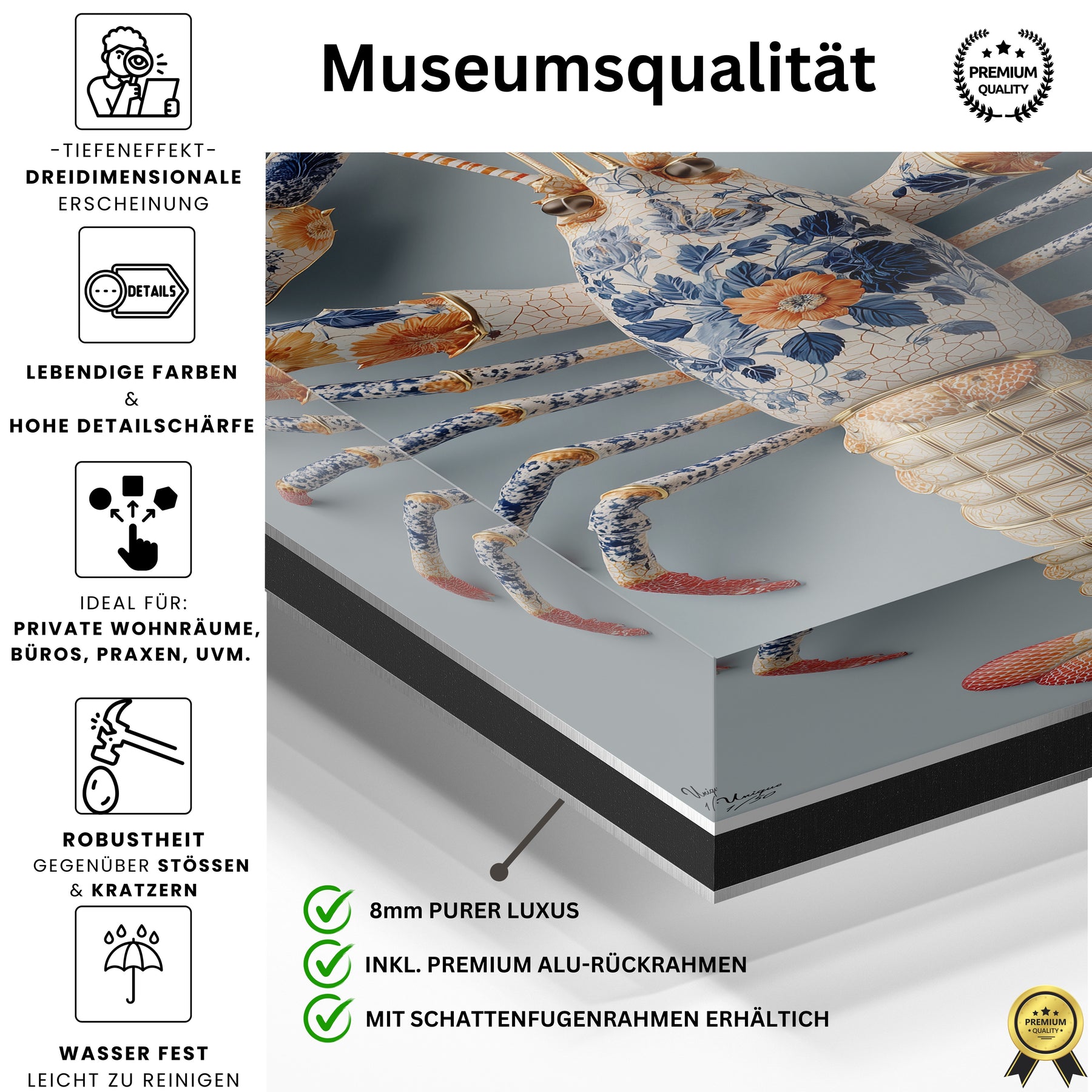 Ich achte extrem auf Details – bei Mode genauso wie bei Interior. Und genau deshalb hat mich dieses Motiv überzeugt. Die feinen floralen Muster, die Struktur, die Farben im Hummer selbst… das wirkt fast wie ein Couture-Piece an der Wand. Es ist mutig, aber unfassbar elegant.