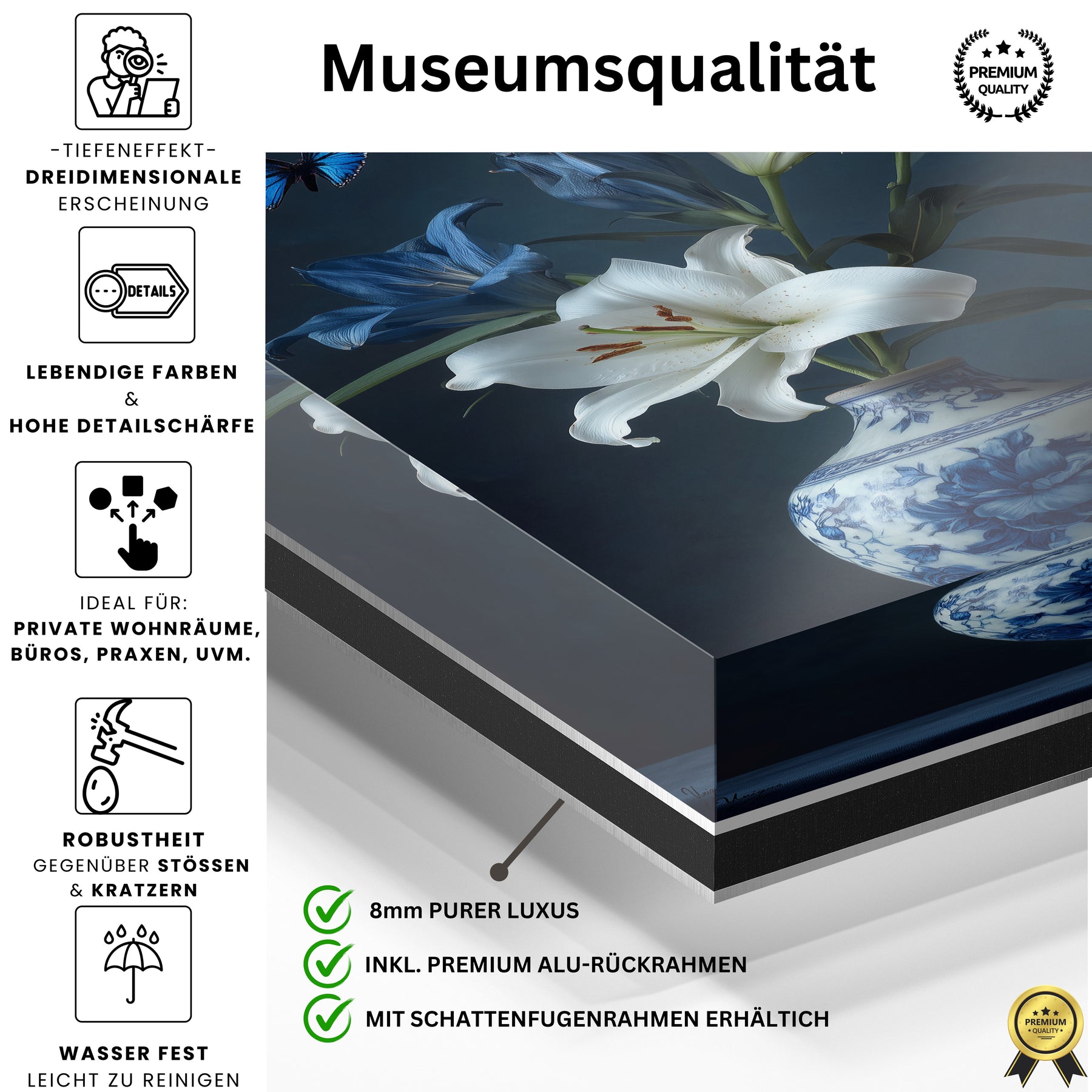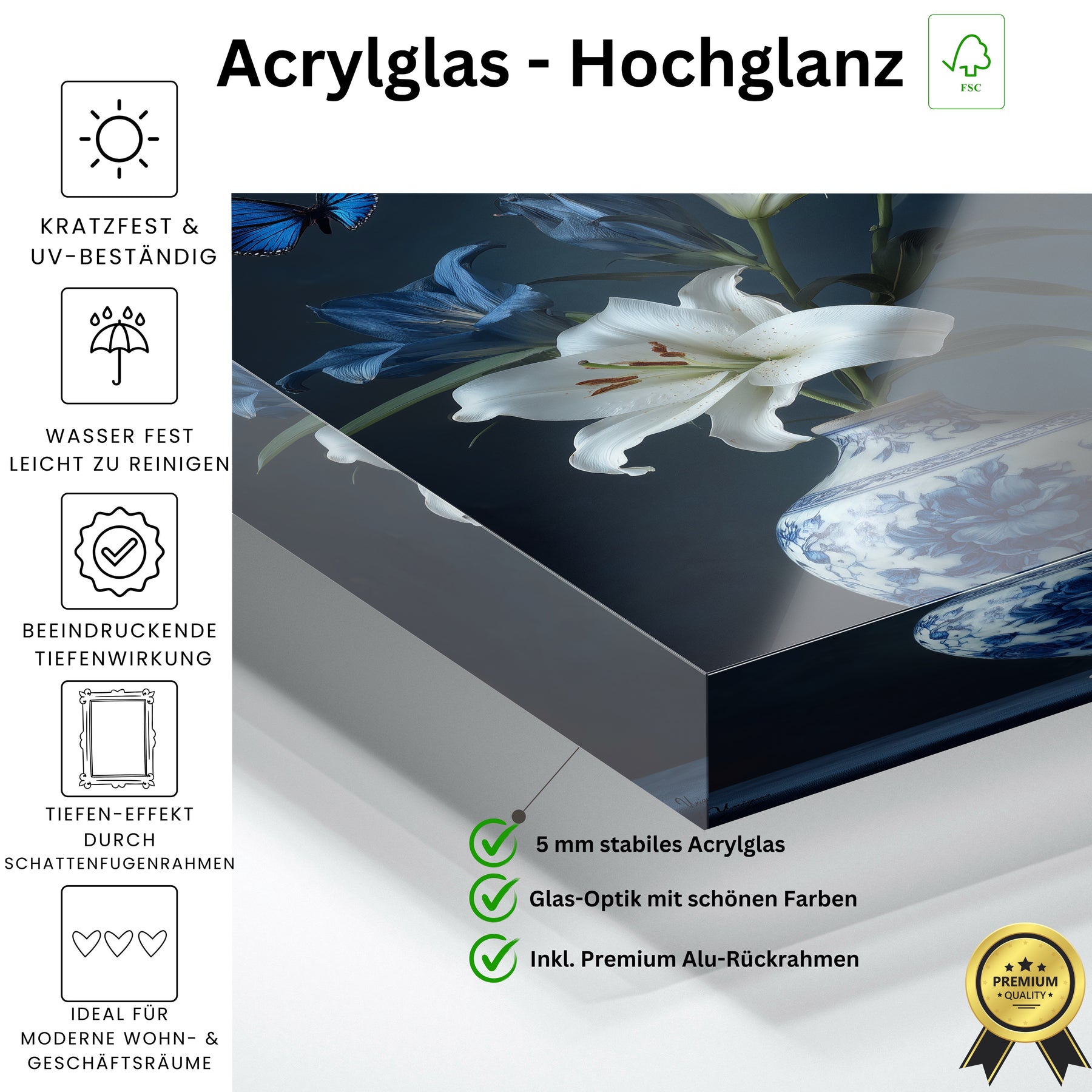 Wir bekommen ständig Nachfragen, woher die Bilder sind. Die Oberfläche vom Acryl sieht sehr hochwertig aus.