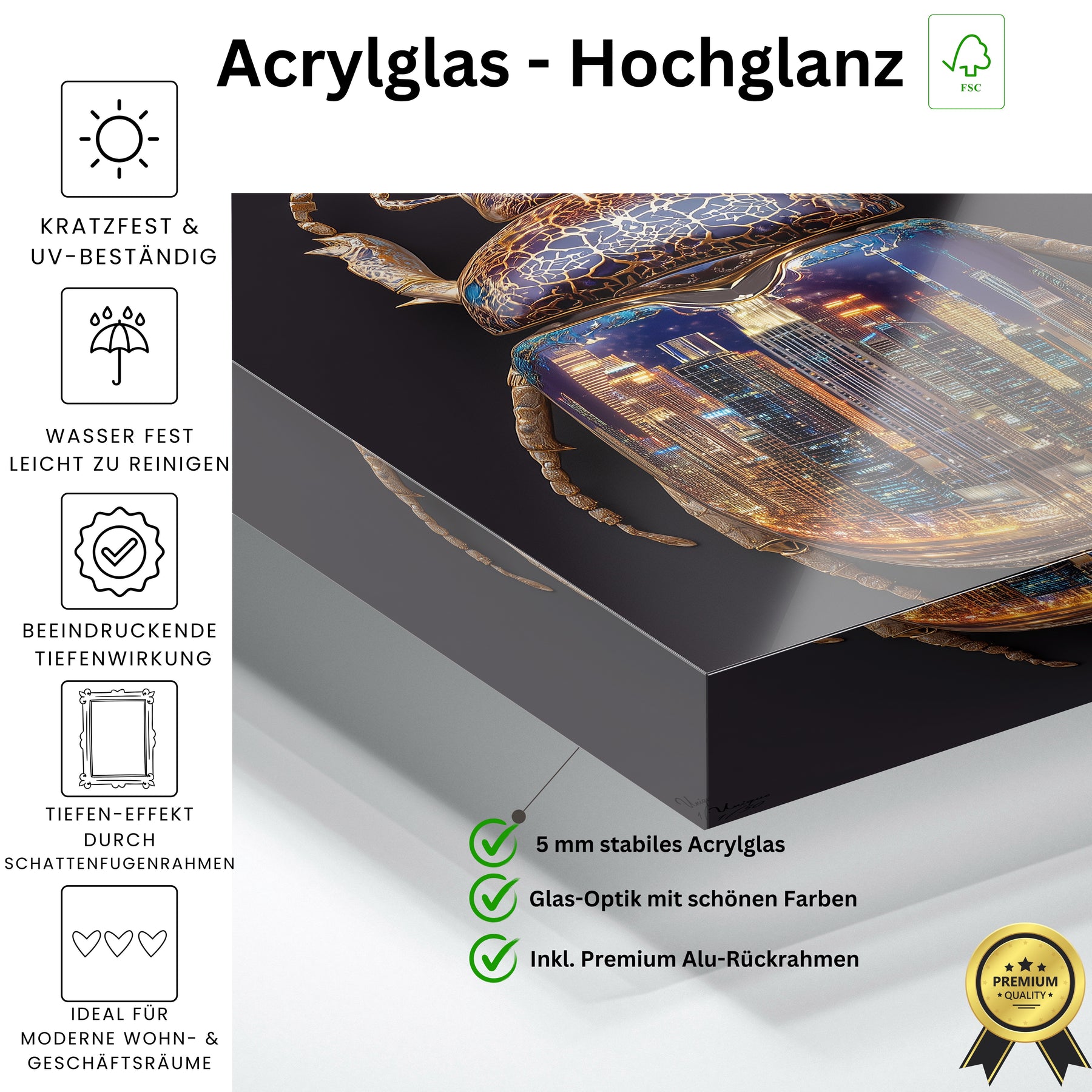 Wir bekommen ständig Nachfragen, woher die Bilder sind. Die Oberfläche vom Acryl sieht sehr hochwertig aus.