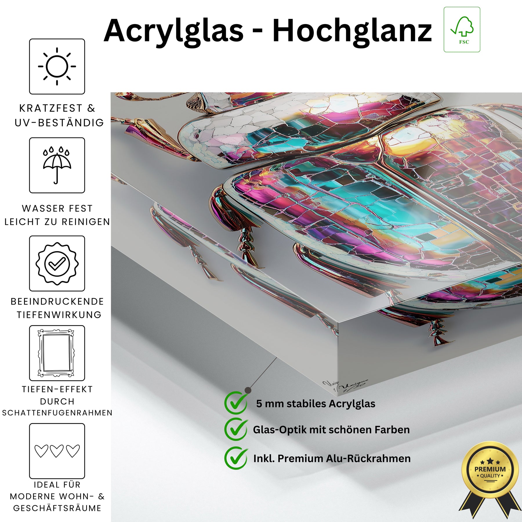 Wir bekommen ständig Nachfragen, woher die Bilder sind. Die Oberfläche vom Acryl sieht sehr hochwertig aus.