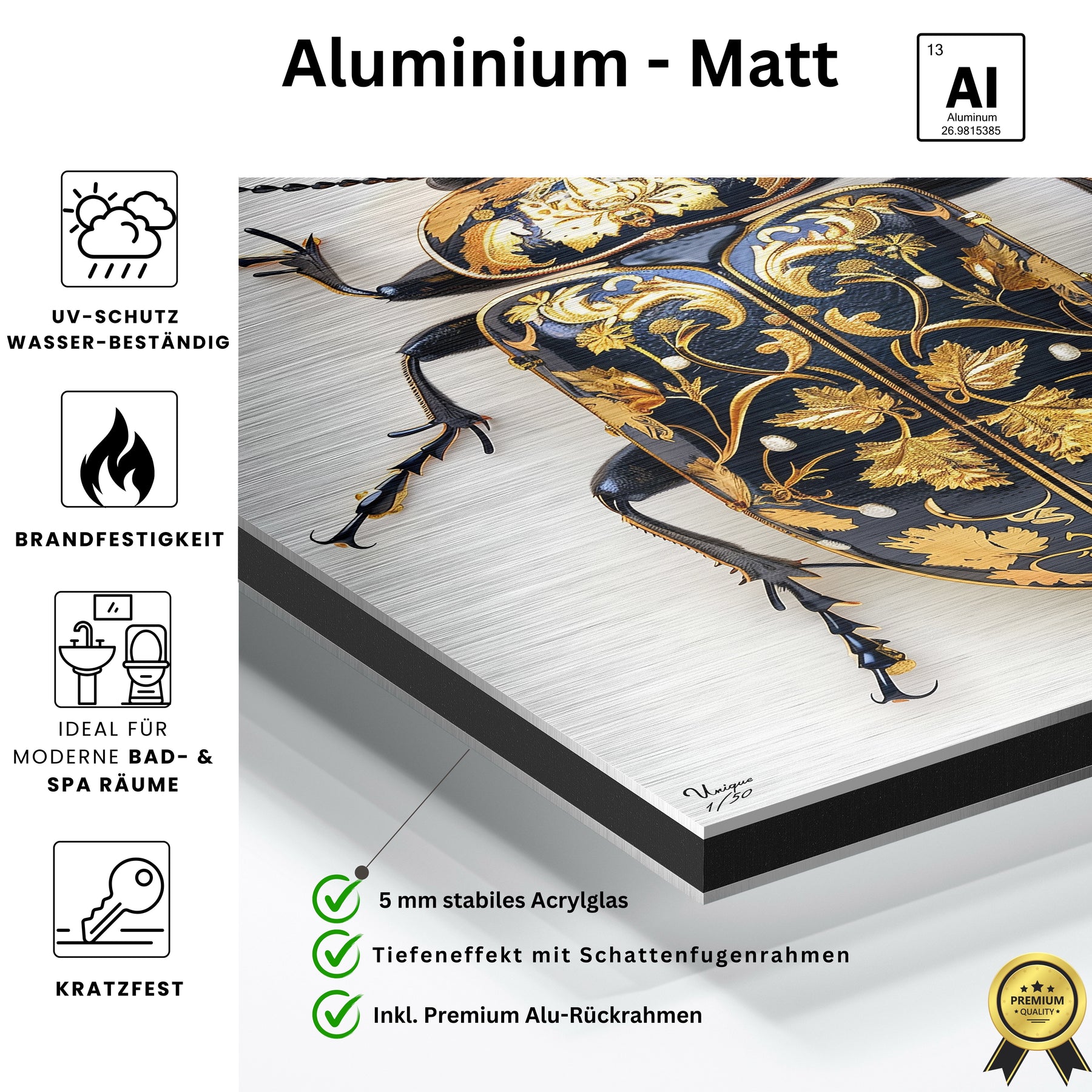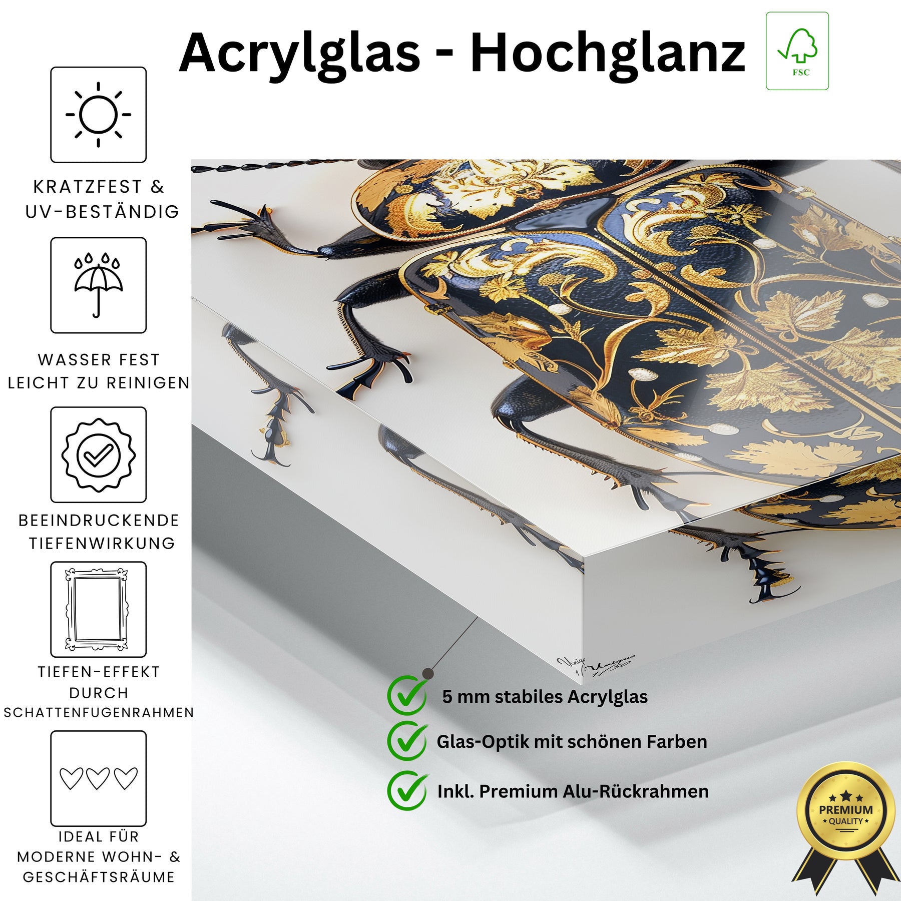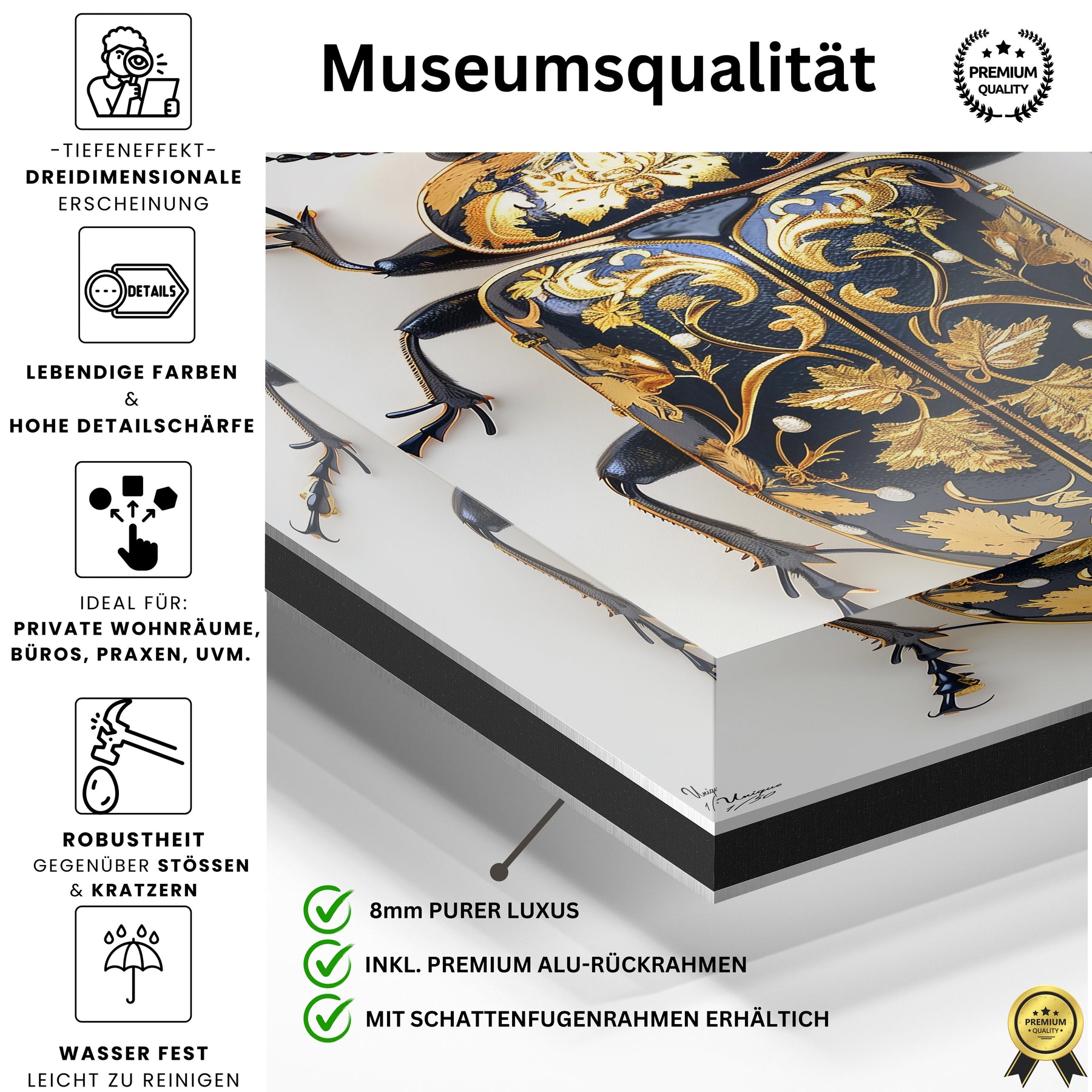 WANDBILD „Gold-Schwarzer Ornamentkäfer“ – Acrylglas & Alu-Dibond | Exklusive Limitierte Kunst | 1 von 50 Weltweit | Museumsqualität
