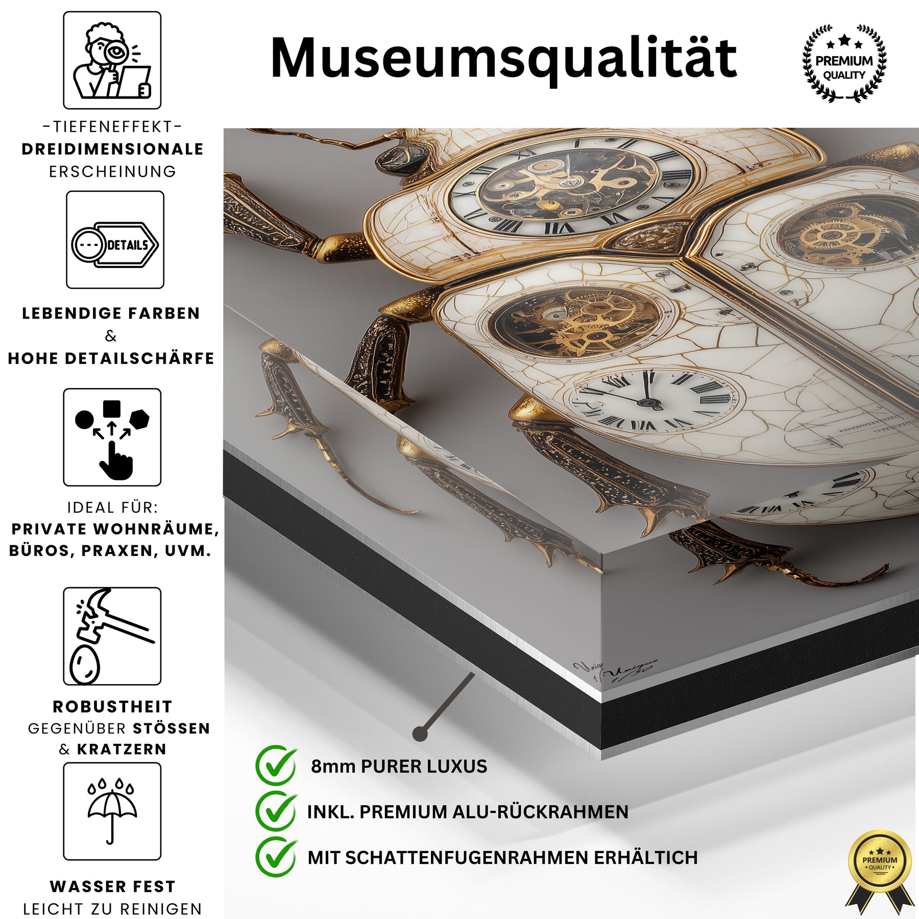 Durch die Kombination aus kunstvoller Mechanik, goldenen Akzenten und feiner Oberfläche entsteht ein Bild, das sofort Aufmerksamkeit erzeugt und jede Wand aufwertet.
