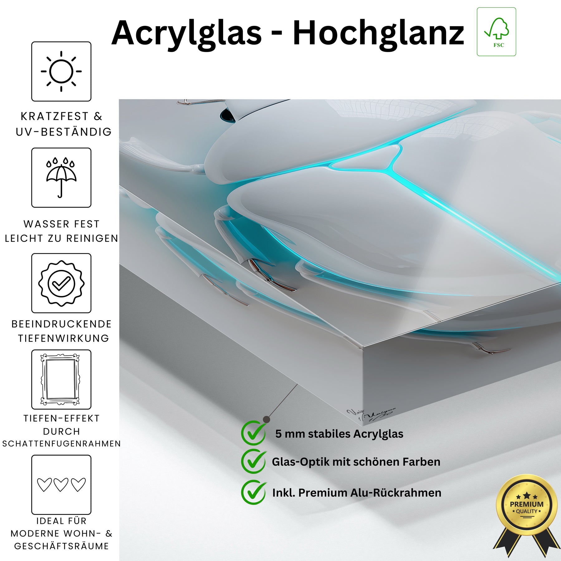 Wir bekommen ständig Nachfragen, woher die Bilder sind. Die Oberfläche vom Acryl sieht sehr hochwertig aus.