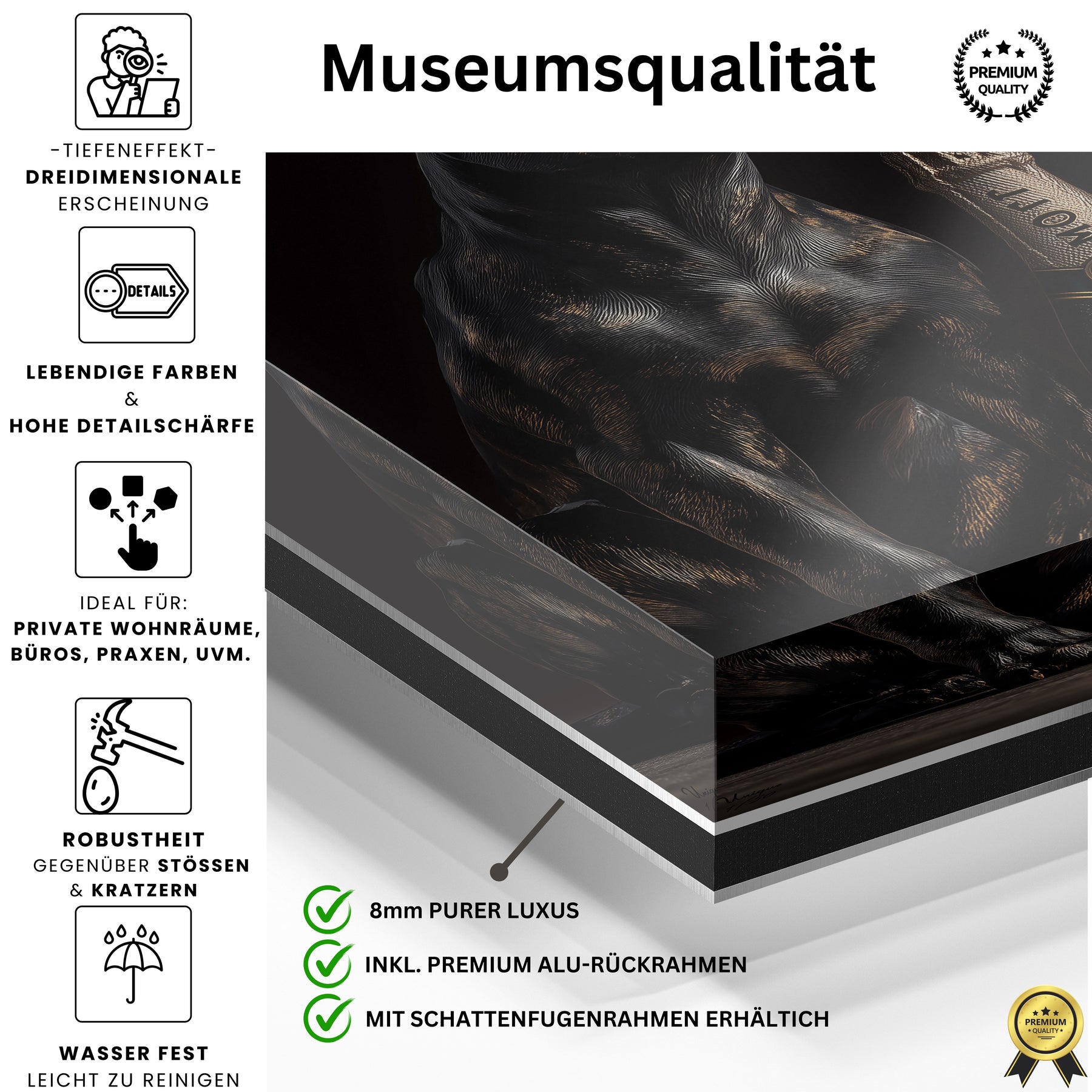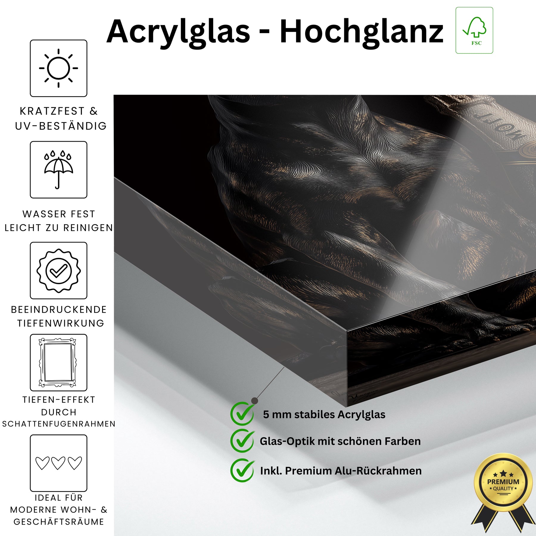 Dieses Motiv bringt genau die richtige Mischung aus Stil und Augenzwinkern in den Raum. Die gelben Augen wirken auf Acrylglas unglaublich intensiv – durch die Tiefenwirkung hat das Bild fast etwas Lebendiges. Die Verarbeitung ist extrem hochwertig, man sieht jedes Detail der Struktur.