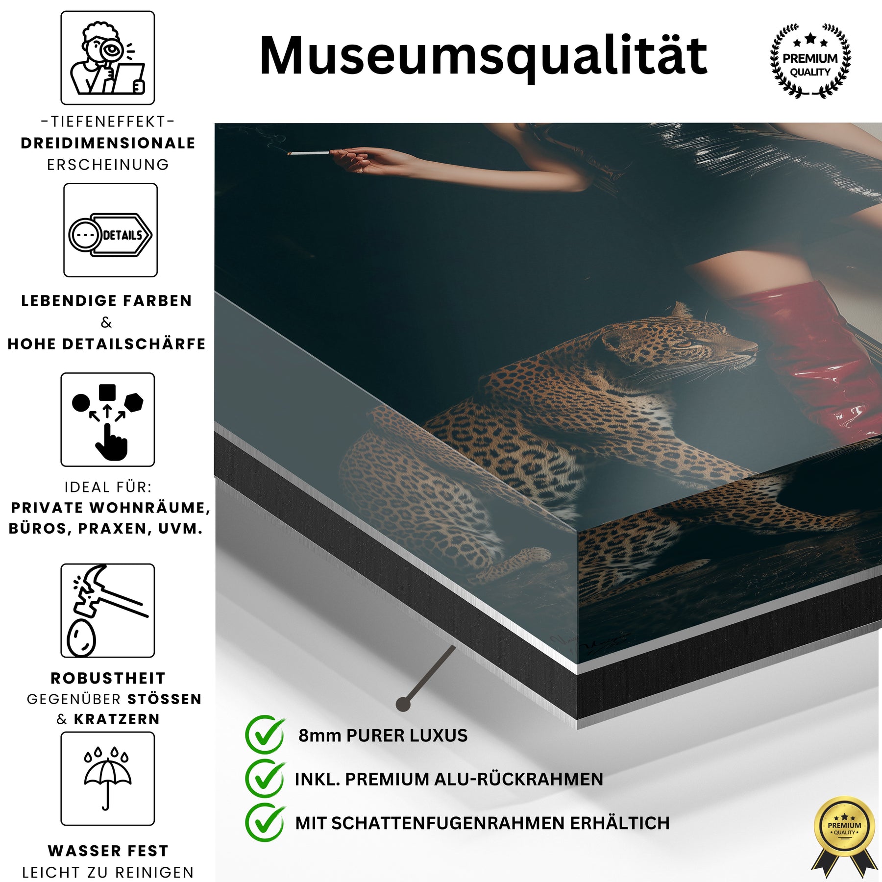 Dieses Motiv bringt genau die richtige Mischung aus Stil und Augenzwinkern in den Raum. Die gelben Augen wirken auf Acrylglas unglaublich intensiv – durch die Tiefenwirkung hat das Bild fast etwas Lebendiges. Die Verarbeitung ist extrem hochwertig, man sieht jedes Detail der Struktur.
