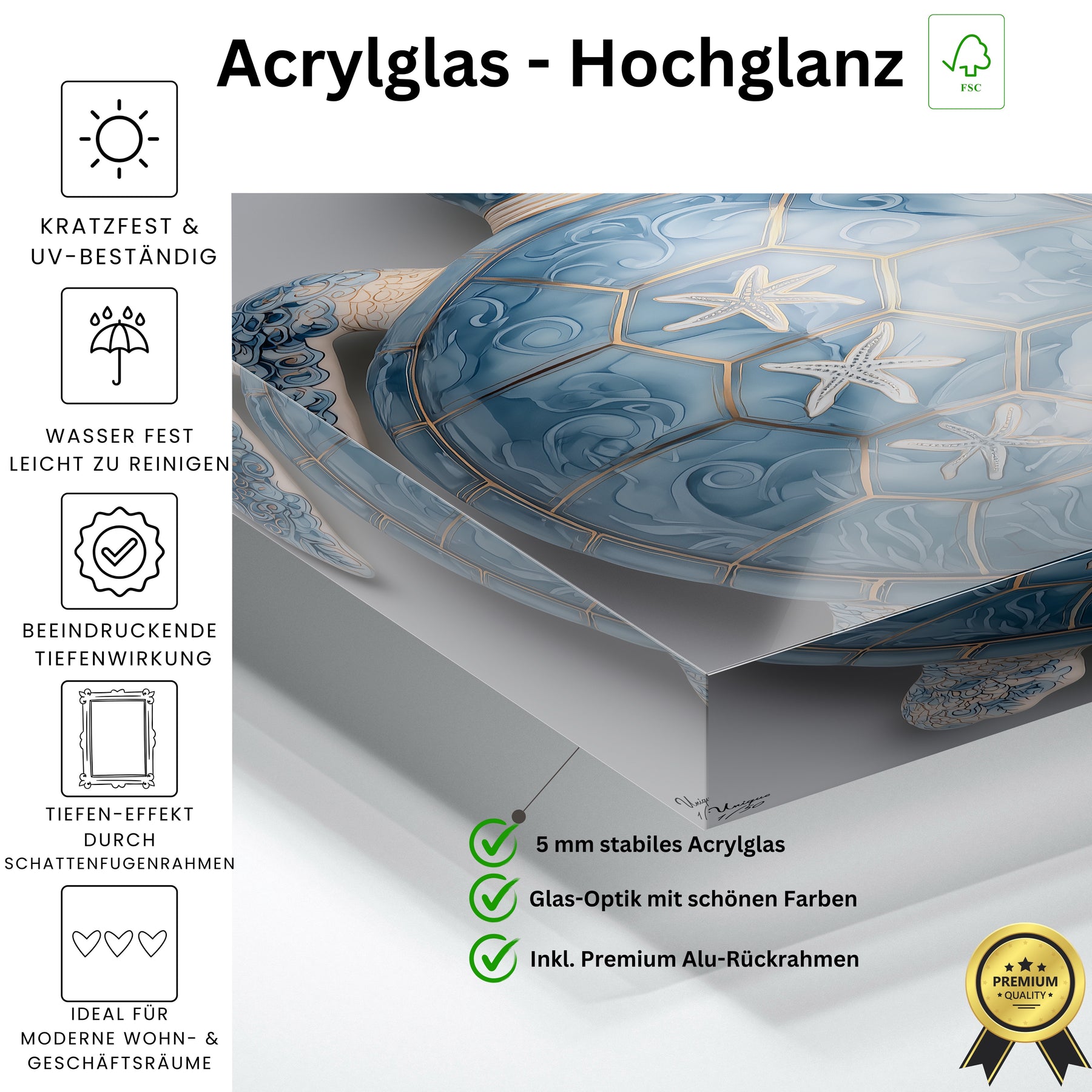 Wir bekommen ständig Nachfragen, woher die Bilder sind. Die Oberfläche vom Acryl sieht sehr hochwertig aus.