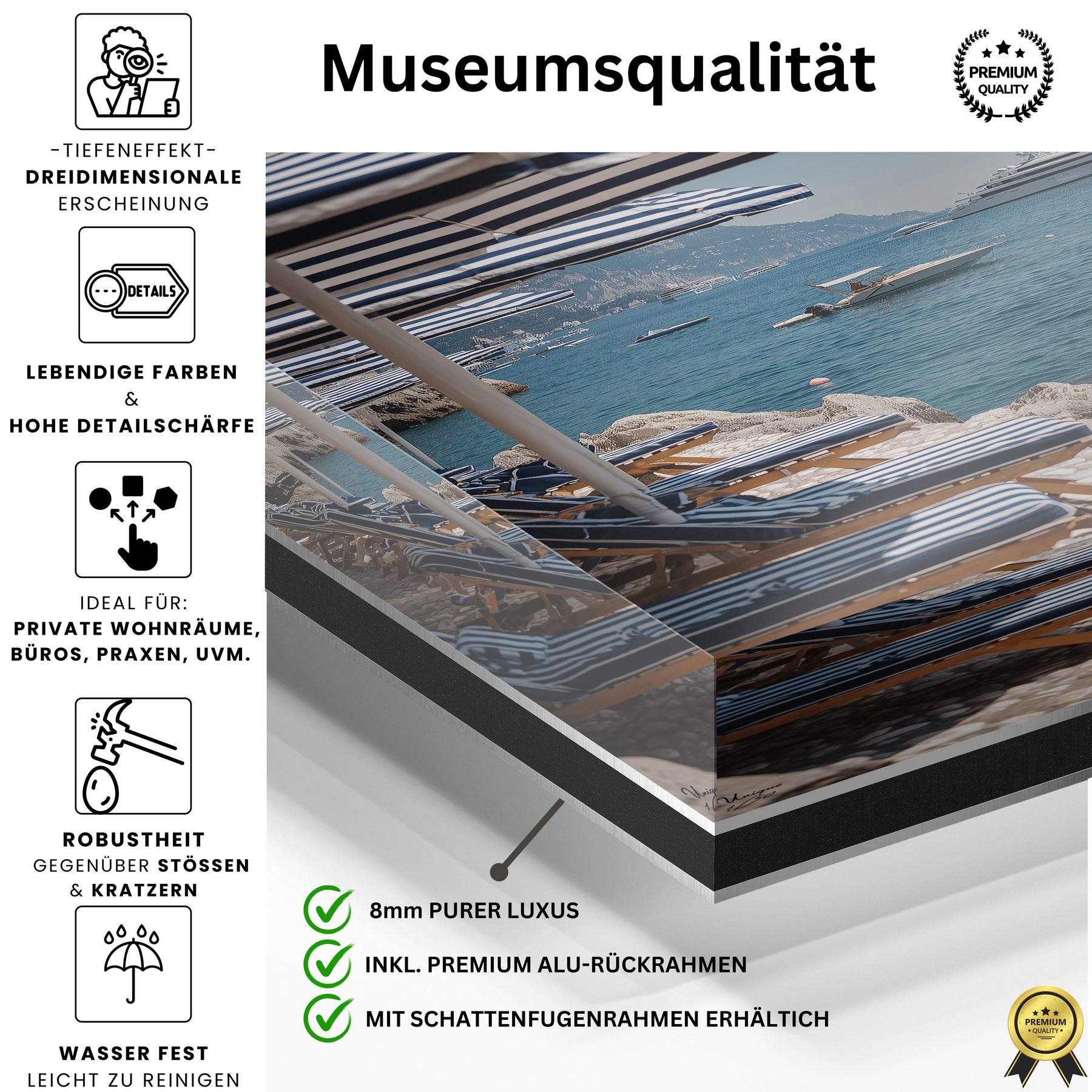 Super Qualität. Vor allem die Tiefe bei Acrylglas hat uns überrascht. Man merkt, dass hier nicht billig produziert wird.