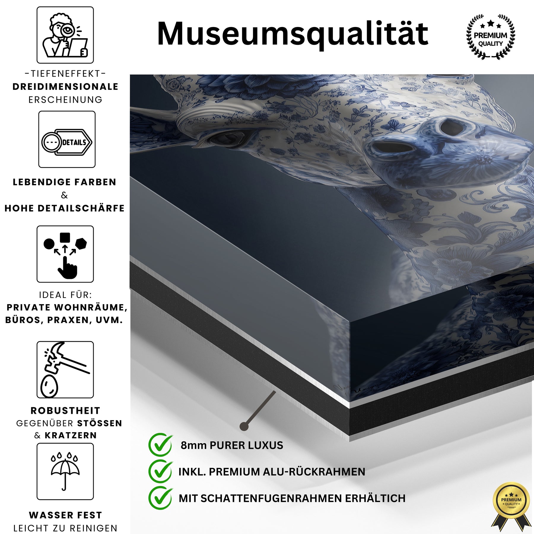 Super Qualität. Vor allem die Tiefe bei Acrylglas hat uns überrascht. Man merkt, dass hier nicht billig produziert wird.
