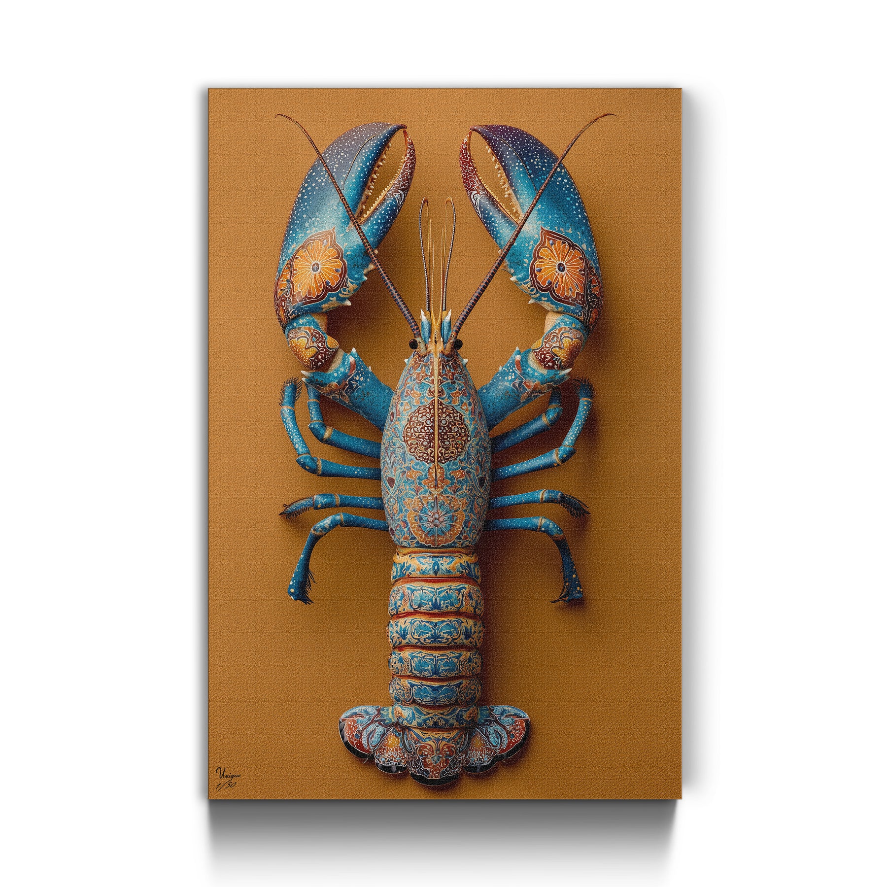 Ich achte extrem auf Details – bei Mode genauso wie bei Interior. Und genau deshalb hat mich dieses Motiv überzeugt. Die feinen floralen Muster, die Struktur, die Farben im Hummer selbst… das wirkt fast wie ein Couture-Piece an der Wand. Es ist mutig, aber unfassbar elegant.