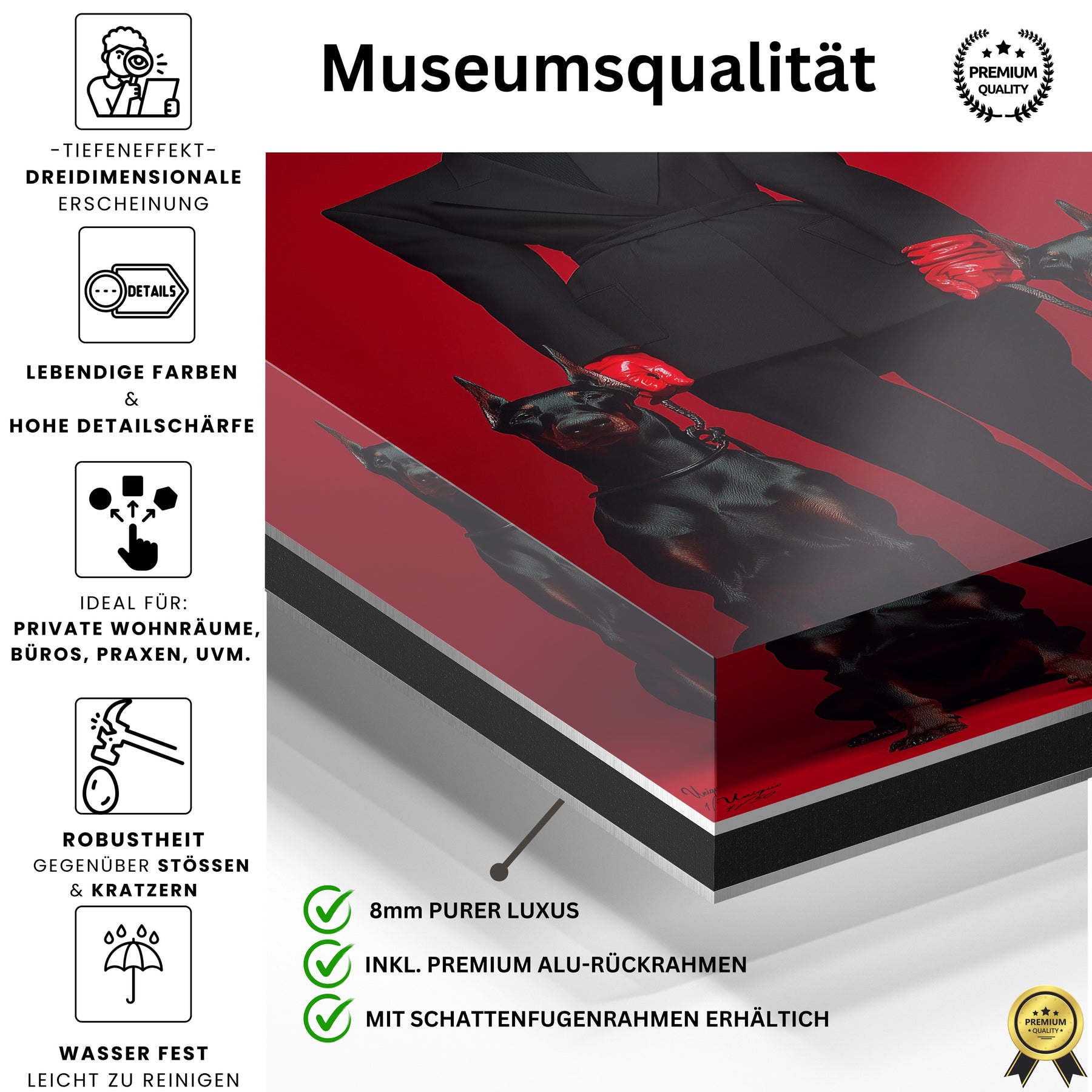 Super Qualität. Vor allem die Tiefe bei Acrylglas hat uns überrascht. Man merkt, dass hier nicht billig produziert wird.