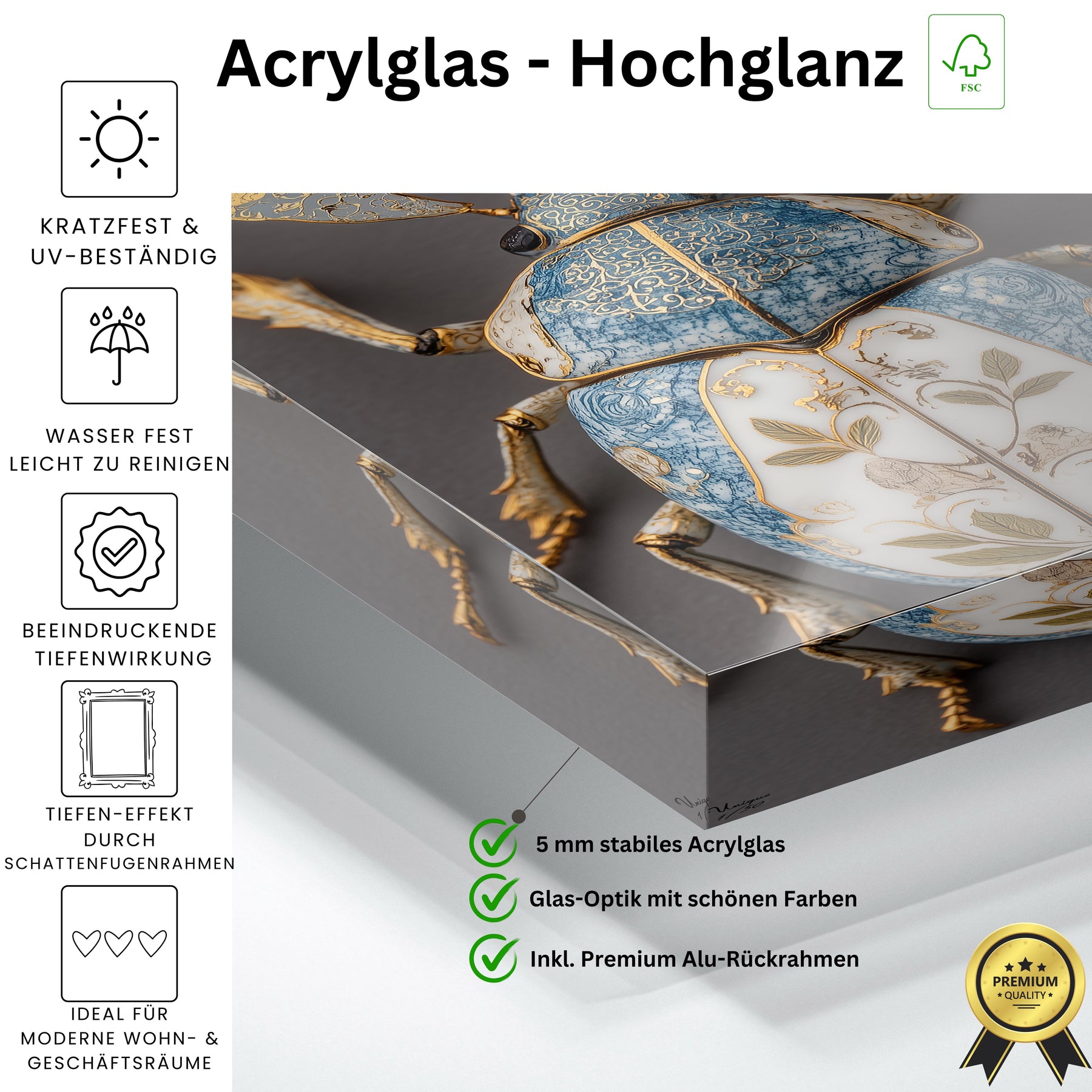 Wir bekommen ständig Nachfragen, woher die Bilder sind. Die Oberfläche vom Acryl sieht sehr hochwertig aus.