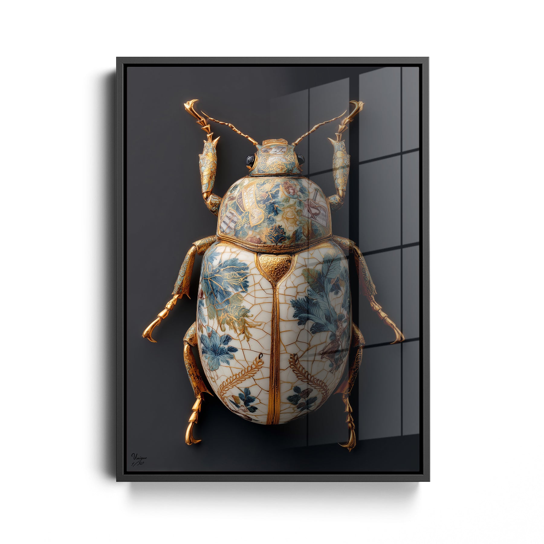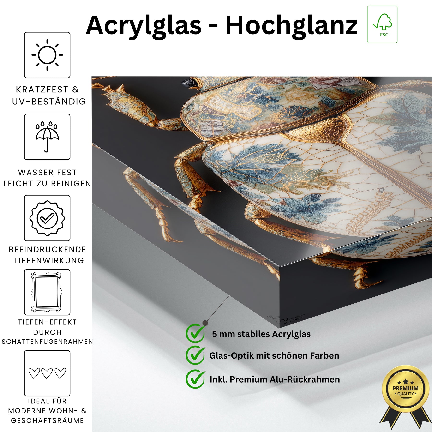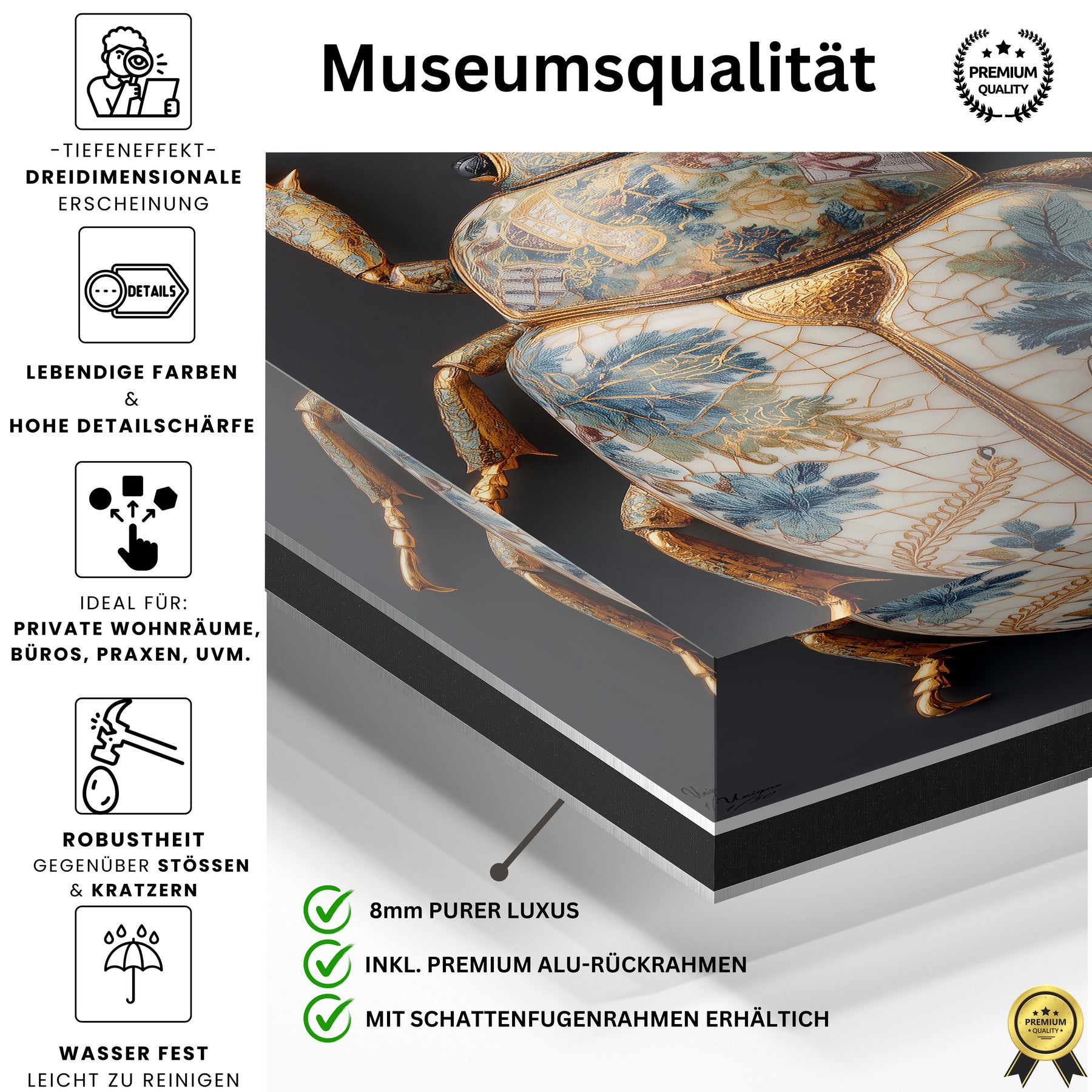 WANDBILD „Floraler Porzellan-Käfer“ – Acrylglas & Alu-Dibond | Exklusive Limitierte Moderne Kunst | 1 von 50 Weltweit in Museumsqualität