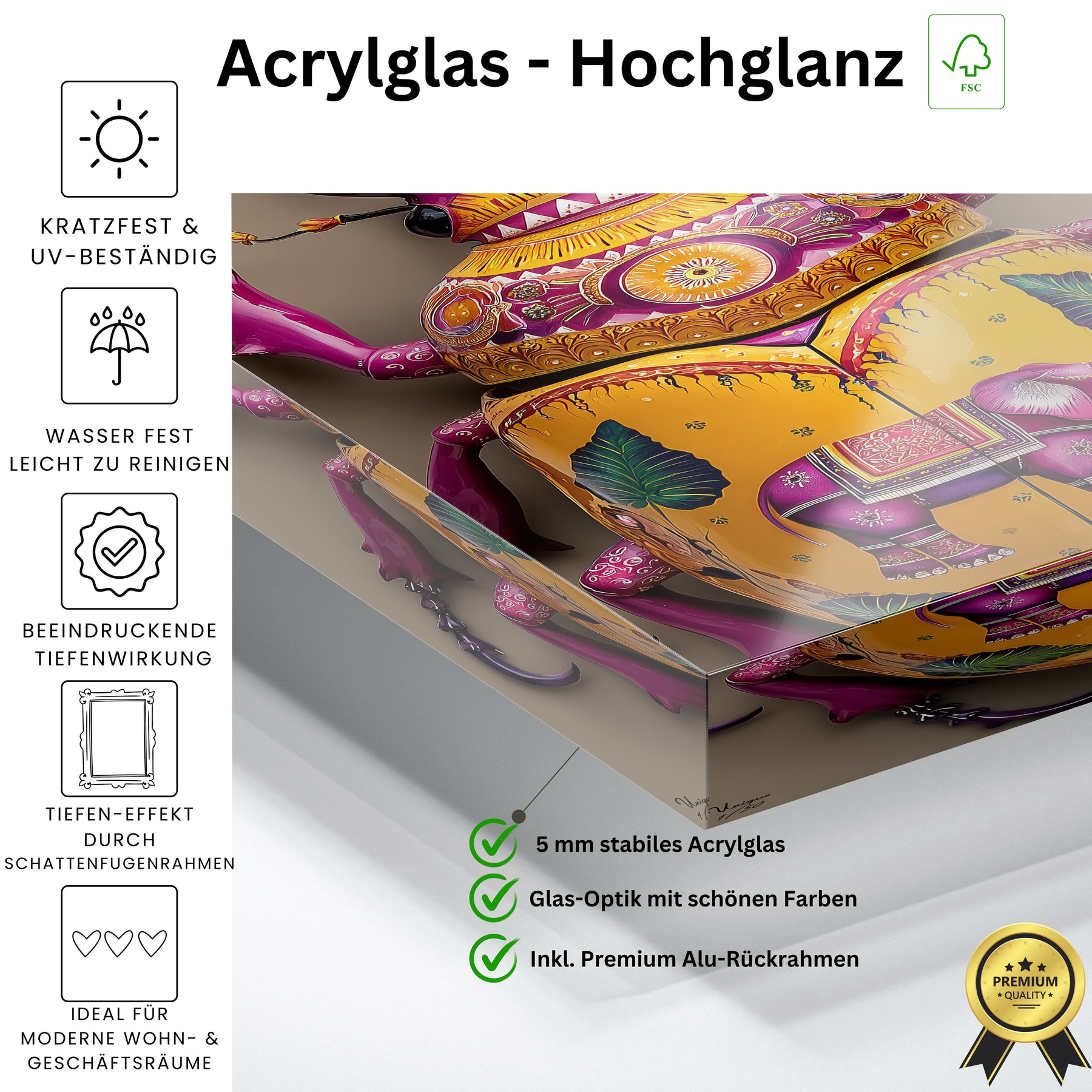 Hochwertiges Acrylglas & Alu-Dibond für maximale Strahlkraft, Tiefe und Langlebigkeit.